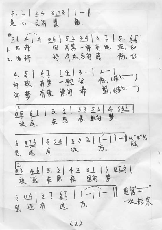 我把我写的曲子的原谱放在我网易的相册里了,大家可以去那里看,是用扫描仪弄的,很清楚。希望大家多提意见哦